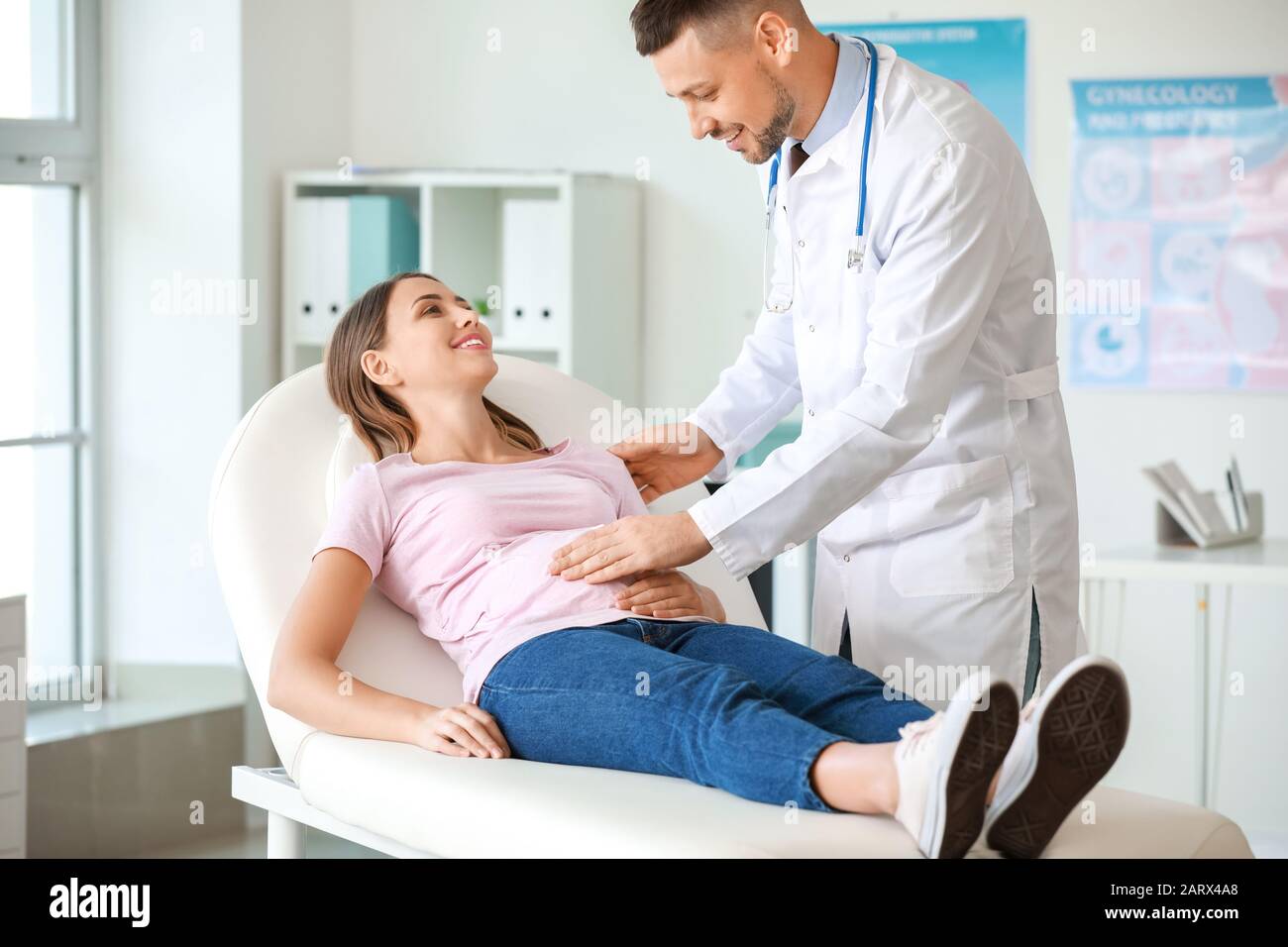Male Gynecologist Working With Pregnant Woman In Clinic Stock Photo Alamy